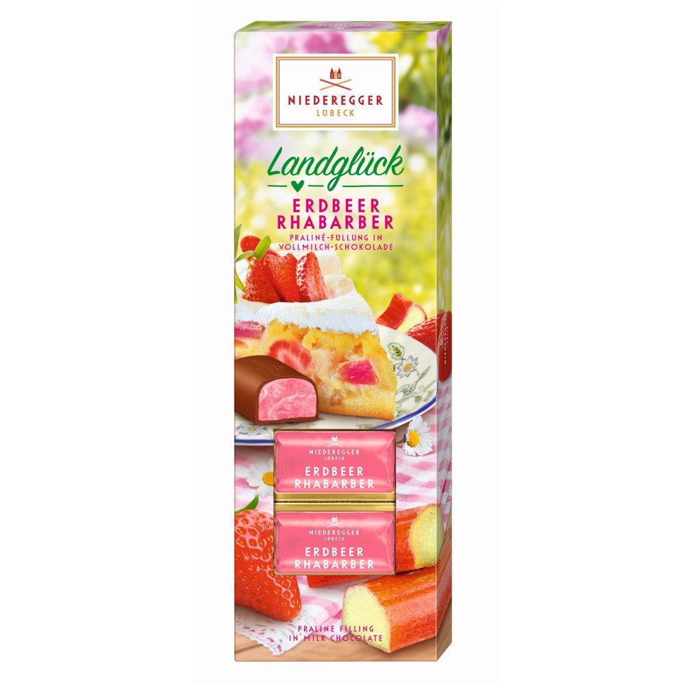 Состав: молочный шоколад 46% (сахар, какао-масло, сухое цельное молоко, какао-масса, эмульгатор: соевый лецитин, экстракт ванили), белый шоколад (сахар, какао-масло, сухое цельное молоко, эмульгатор: соевый лецитин, экстракт ванили), инвертный сахарный сироп, полуобезжиренное сгущенное молоко, наполнитель из клубники 5,8% (клубничное пюре, клубничный сок, глюкозный сироп, сахар, инвертный сахарный сироп, натуральный ароматизатор, концентрат лимонного сока), спирт, сухое обезжиренное молоко, ревеневая паста 1,0% (ревеневое пюре 30%, глюкозный сироп, инвертный сахарный сироп, подкислитель: лимонная кислота, концентраты (морковь, черная морковь), спирт, крахмал, натуральный ароматизатор), натуральный ароматизатор, пищевой краситель: порошок свеклы (мальтодекстрин, свекла), увлажнитель: инвертаза. Может содержать следы других орехов. Содержание сухих веществ какао в молочном шоколаде: не менее 33%. Содержание сухих веществ молока в молочном шоколаде: не менее 14%. Не содержит ГМО. Пищевая ценность на 100 г. продукта: жиры - 26,4 г, из них насыщенные жирные кислоты - 16,3 г; углеводы - 52,2 г, из них сахара - 50,5 г; белки - 5,1 г; соль - 0,18 г. Энергетическая ценность на 100 г. продукта: 506 ккал / 2113 кДж. Хранить в сухом прохладном месте, при температуре +16 +18 C, отн. вл. 60-80%.