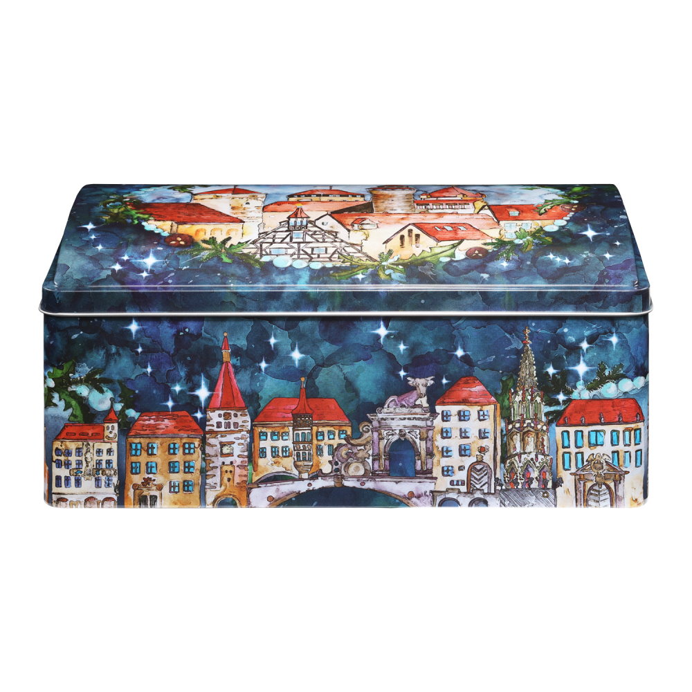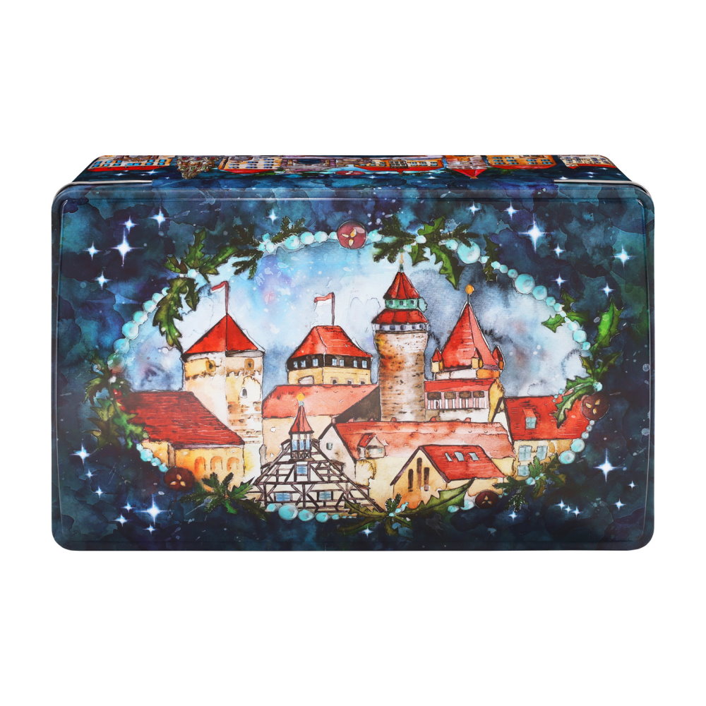 Состав: орехи 24% (фундук, грецкие орехи, миндаль), сахар, шоколад 12% (какао-масса, сахар, какао-масло, эмульгатор: лецитин), мука пшеничная, цедра апельсина, глюкозно-фруктозный сироп, инвертный сахарный сироп, цельное яйцо, сухой яичный белок, цедра лимона, сушеный инжир, специи (содержат корицу), яичный порошок, картофельный крахмал, увлажнитель: сорбит; пшеничный белок, цветочный мед, разрыхлитель: гидрокарбонат натрия; молочный белок, карамелизированный сахарный сироп (сироп глюкозы, сахар), концентрат лимонного сока, крахмал восковой кукурузы, соль. Может содержать следы других орехов, кунжута и сои. Не содержит ГМО. Энергетическая ценность на 100 г. продукта: 1796 кДж / 429 ккал. Пищевая ценность на 100 г. продукта: жиры – 20,5 г, из них насыщенные жирные кислоты – 4,8 г; углеводы –49,8 г, из них сахара – 40 г; белки – 8,7 г; соль - 0,5 г.
