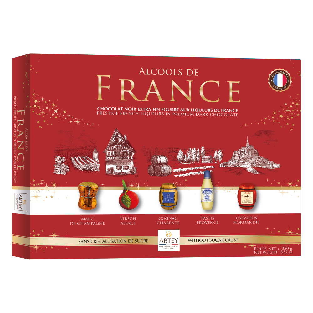 Состав: инвертный сахарный сироп, сахар, какао-паста, какао-масло, спирт, коньяк Bayet (1,61%), ликер Marc de Champagne (1,22%), вишневый бренди (0,94%), кальвадос (0,89%), настойка Pastis (0,81%), эмульгатор: лецитины, ароматизаторы, экстракт ванили. Содержание какао в шоколаде: не менее 51%. Может содержать следы орехов, молока и сои. Не содержит ГМО. Энергетическая ценность на 100 г: 1935 кДж / 463 ккал. Пищевая ценность на 100 г: жиры - 23 г, из них насыщенные жирные кислоты - 15 г; углеводы - 57 г, из них сахара - 45 г; белки - 4,5 г; соль - 0,02 г. Хранить в сухом прохладном месте, при постоянной температуре +16 С...+18 C и относительной влажности 50-60%.