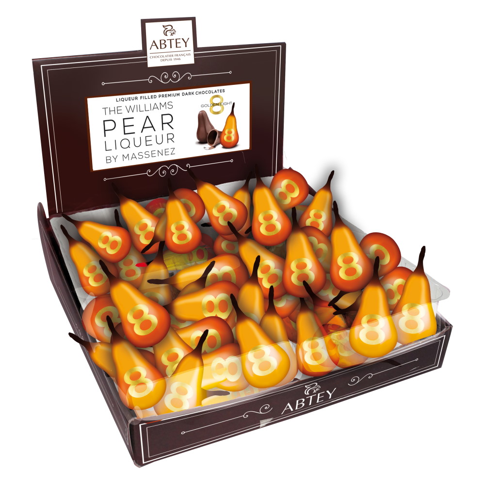 Состав: инвертный сахарный сироп, сахар, какао-паста, какао-масло, ликер Golden 8® (вода, спирт, грушевый бренди Williams, натуральные ароматизаторы) (8,1%), спирт, эмульгатор: лецитины, экстракт ванили. Содержание какао-продуктов в шоколаде: не менее 51%. Может содержать следы орехов, молока и сои. Не содержит ГМО. Энергетическая ценность на 100 г: 1935 кДж / 463 ккал. Пищевая ценность на 100 г: жиры - 23 г, из них насыщенные жирные кислоты - 15 г; углеводы - 57 г, из них сахара - 45 г; белки - 4,5 г; соль - 0,02 г. Хранить в сухом прохладном месте, при постоянной температуре +16 С...+18 C и относительной влажности 50-60%.