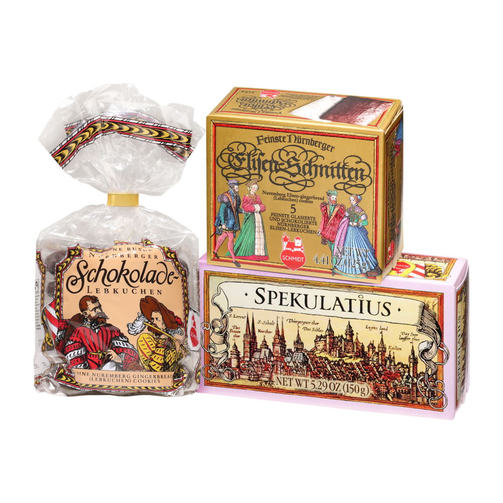 Состав: пшеничная мука, сахар, шоколад 13% (какао-масса, сахар, какао-масло, эмульгатор: подсолнечный лецитин), орехи 11% (фундук, грецкие орехи, миндаль, кешью), цедра апельсина, глюкозно-фруктозный сироп, персипан (ядра абрикоса 2%, сахар, инвертный сахарный сироп, картофельный крахмал), инвертный сахарный сироп, увлажнитель: сорбитол; яичный порошок, специи (содержат корицу), картофельный крахмал, цветочный мед, яблочное пюре, молочные белки, пшеничный белок, разрыхлители: гидрокарбонат натрия, карбонат калия; карамелизированный сахарный сироп, крахмал восковой кукурузы, эмульгатор: подсолнечный лецитин, концентрат лимонного сока, соль, загуститель: пектин. Может содержать следы других орехов, сои и кунжута. Не содержит ГМО. Энергетическая ценность на 100 г. продукта: 1645 кДж / 391 ккал. Пищевая ценность на 100 г. продукта: жиры - 13,1 г, из них насыщенные жирные кислоты - 3,9 г; углеводы – 59 г, из них сахара – 37,7 г; белки - 7,9 г; соль - 0,25 г.