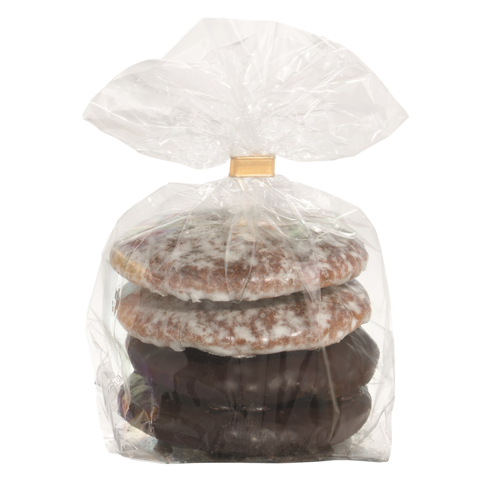 Состав: сахар, мука пшеничная, орехи 11% (фундук, кешью, грецкие орехи, миндаль), шоколад (какао-масса, сахар, какао-масло, эмульгатор: подсолнечный лецитин), цедра апельсина, глюкозно-фруктозный сироп, персипан (ядра косточек абрикоса 2%, сахар, инвертный сахарный сироп, картофельный крахмал), инвертный сахарный сироп, увлажнитель: сорбитол; яичный порошок, специи (содержат корицу), картофельный крахмал, цветочный мед, яблочное пюре, молочные белки, разрыхлители: гидрокарбонат натрия, карбонат калия; пшеничный глютен, карамелизированный сахарный сироп, эмульгатор: подсолнечный лецитин; крахмал восковой кукурузы, концентрат лимонного сока, соль, загуститель: пектин; сухой яичный белок. Может содержать следы других орехов, кунжута и сои. Не содержит ГМО. Энергетическая ценность на 100 г. продукта: 1602 кДж / 381 ккал. Пищевая ценность на 100 г. продукта: жиры – 11,1 г, из них насыщенные жирные кислоты – 2,6 г; углеводы – 61,2 г, из них сахара – 40,3 г; белки – 7,7 г; соль - 0,28 г. Хранить в сухом прохладном месте, при температуре +15...+18 °C, относительной влажности 60-80 %.