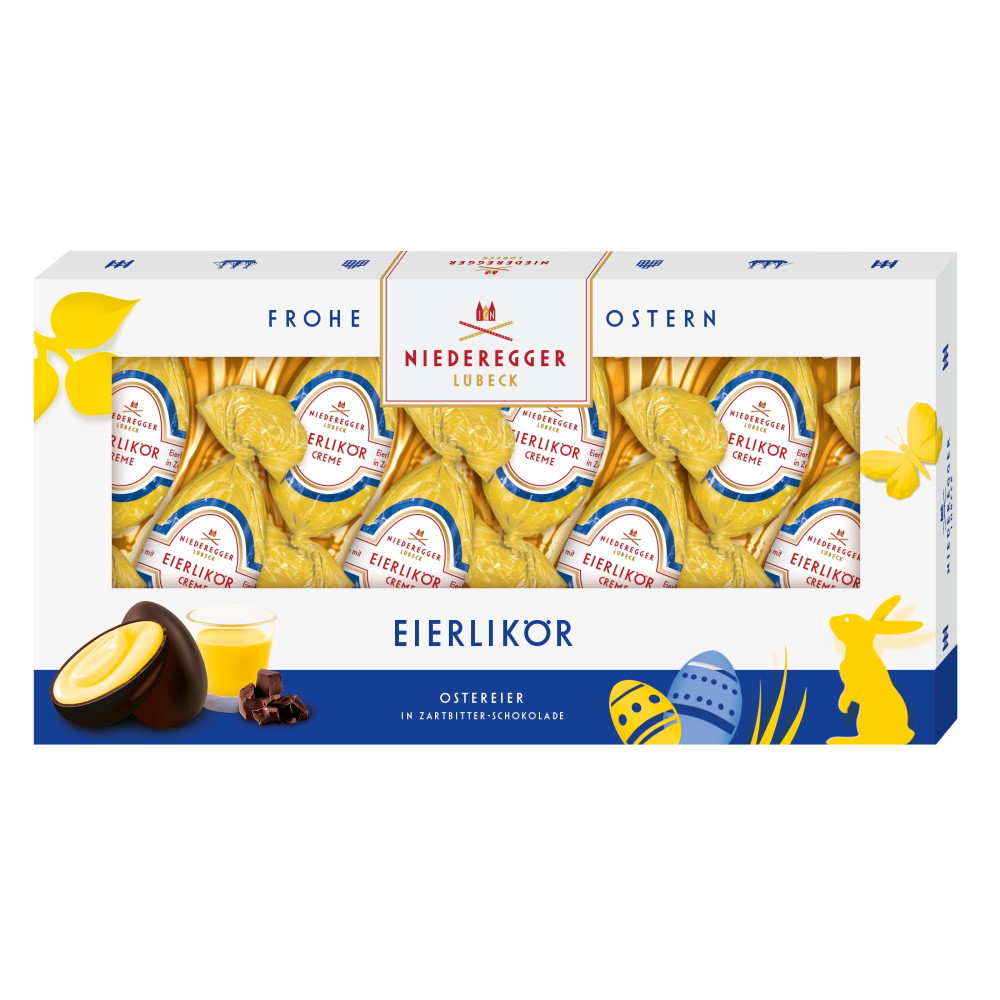 Состав: темный шоколад 45% (какао-масса, сахар, какао-масло, эмульгатор: лецитины (содержат сою), экстракт ванили), белый шоколад (сахар, какао-масло, цельное сухое молоко, эмульгатор: лецитины (содержат сою), экстракт ванили), сливки, яичный ликер 7,6%, натуральные ароматизаторы, инвертный сахарный сироп, спирт, увлажнитель: инвертаза. Может содержать следы других орехов. Содержание сухих веществ какао в темном шоколаде: не менее 50%. Не содержит ГМО. Пищевая ценность на 100 г. продукта: жиры - 31,6 г, из них насыщенные жирные кислоты - 19,2 г; углеводы - 42,2 г, из них сахара - 40,3 г; белки - 4,6 г; соль - 0,08 г. Энергетическая ценность на 100 г. продукта: 506 ккал / 2116 кДж. Хранить в сухом прохладном месте, при температуре +16 +18 0C, отн. вл. 60-80%.