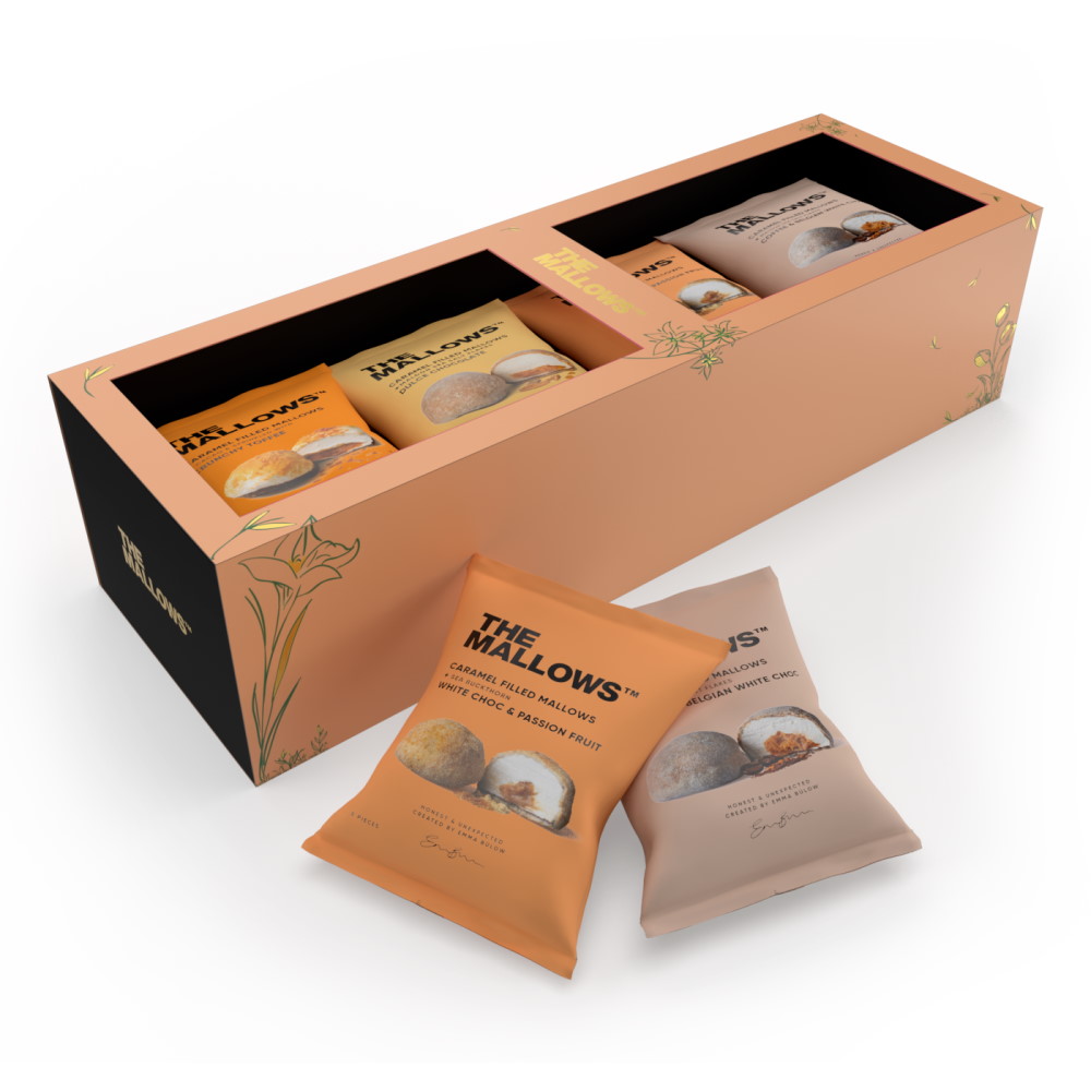 Состав: белый шоколад 34% (сахар, какао-масло, сухое молоко, какао-масса, эмульгатор: соевый лецитин, карамелизированный сахар, натуральный ароматизатор, специи, натуральный ароматизатор: ваниль), глюкозно-фруктозный сироп, сахар, шоколадная глазурь 9% (сахар, растительный жир (кокосовый, пальмоядровый, пальмовый (RSPO), подсолнечный, ши, рапсовый)), какао-порошок с пониженным содержанием жира, стабилизатор: E492, эмульгатор: E322 (соевый), натуральный ароматизатор: ваниль), карамельная начинка 9% (глюкозный сироп, растительное масло (пальмовое (RSPO))), сахар, сгущенное обезжиренное молоко (обезжиренное молоко, сахар), декстроза, растительное масло (рапсовое), эмульгатор: E471, соль, регулятор кислотности: E331III, натуральный ароматизатор), вода, декстроза, карамель (глюкозный сироп, тростниковый сахар, сгущенное молоко, соленое сливочное масло), желатин, маракуйя (сублимированная) 0,5%, облепиха (сублимированная) 0,3%, растворимый кофе 0,2%, натуральный ароматизатор. Содержание сухих веществ какао в шоколаде: не менее 31%. Не содержит ГМО. Энергетическая ценность на 100 г: 1882 кДж / 448 ккал. Пищевая ценность на 100 г: жиры - 18 г, из них насыщенные жирные кислоты - 11 г; углеводы - 67 г, из них сахара - 60 г; белки - 4 г; соль - 0,1 г. Хранить в сухом прохладном месте при t от +10 C...+18 C.