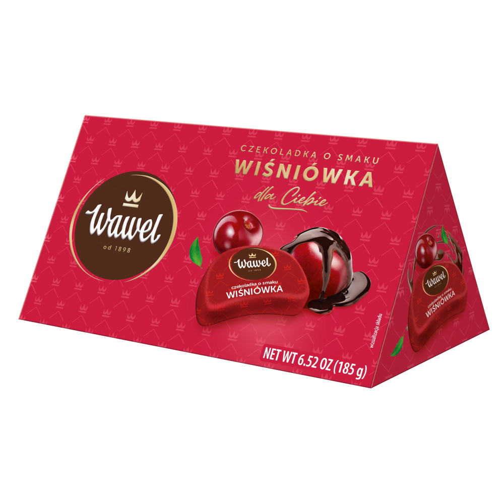 Состав: шоколад 51% [сахар, какао-масса, какао-масло, растительный жир (ши), эмульгатор: лецитины], сахар, вишневая паста 5,7% [сахар, вишня 31%, концентрированный сок черной моркови, концентрированный лимонный сок, цитрусовые волокна], растительный жир (пальмовый), глюкозный сироп, сливки, сухая молочная сыворотка, сгущенное молоко с сахаром (молоко, сахар), спирт, регулятор кислотности: лимонная кислота, натуральные ароматизаторы. Содержание сухих веществ какао в шоколаде: не менее 43%. Может содержать следы арахиса, орехов, семян кунжута, пшеницы, сои и яиц. Содержит растительные жиры, помимо какао-масла. Не содержит ГМО. Энергетическая ценность на 100 г. продукта: 1958 кДж / 468 ккал. Пищевая ценность на 100 г. продукта: жиры - 21 г, из них насыщенные жирные кислоты - 12 г; углеводы - 61 г, из них сахара - 58 г; белки - 3,6 г; соль - 0,09 г. Хранить в сухом прохладном месте, при температуре +14 C... +20 C, отн. вл. 60-75%.