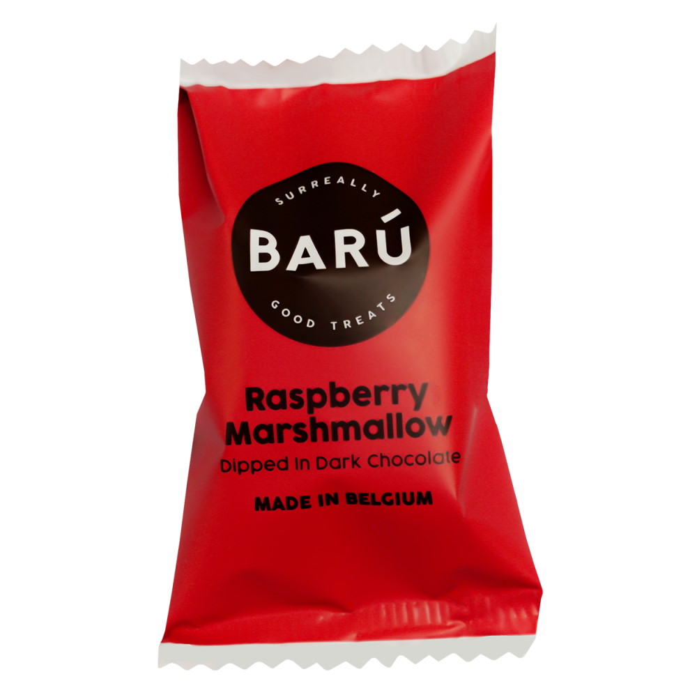 Состав: маршмеллоу (53,6%) (глюкозно-фруктозный сироп, сахар, вода, декстроза, желатин, кукурузный крахмал, мед, молотый стручок ванили, регулятор кислотности: молочная кислота), темный шоколад (45%) (какао-масса, сахар, какао-масло, молочный жир, эмульгатор: соевый лецитин, натуральный ароматизатор: ваниль), сублимированная малина (1,4%). Содержание сухих веществ какао в темном шоколаде: не менее 53%. Может содержать следы орехов, глютена, кунжута и яиц. Не содержит ГМО. Энергетическая ценность на 100 г: 1761 кДж / 418 ккал. Пищевая ценность на 100 г: жиры - 15 г, из них насыщенные жирные кислоты - 9,1 г; углеводы - 64 г, из них сахара - 63 г; белки - 3,6 г; соль - 0,02 г. Хранить в сухом прохладном месте, при t от +12 C...+18 C.